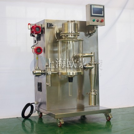 小型噴霧干燥機主要在科研階段對溶液或流體樣品進行噴霧干燥成粉或微小顆粒。其原理是通過霧化器將樣品霧化成微細霧滴,進入干燥室內進行熱交換,水份瞬間蒸發,固體經過旋風分離器進行回收,飽和氣體經過除塵器過濾后排空,本設備可應用于從試驗室到一般研究室的噴霧干燥作業,在食品醫藥化工行業均可良好的應用。
