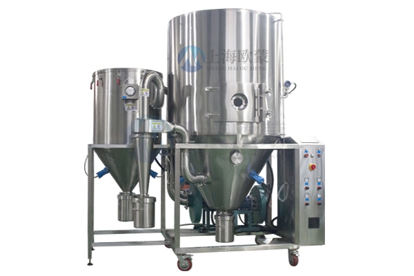 (3)干燥室**溫度達到180℃~220℃當離心噴嘴打開時,當噴嘴達到高速時,打開進料泵并添加進料液。進料量應由小到大,否則會粘在墻上,直到調整到適當的量。材料液的濃度應根據材料的干燥溫度進行準備,以確保成品干燥后具有良好的流動性;